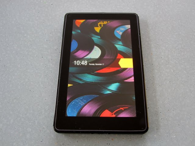 The first impression that you have when you pick up the Kindle Fire is that it's compact, but dense. It's still under a pound, but if you've just been handling the other members of the kindle family there is much more heft to the Kindle Fire. The other first impression that you'll get is that this thing is, literally, shiny. In most settings, reflections don't get too much in the way, but outdoors it can be difficult to read the screen. It's very much the polar opposite of the E-Ink displays which thrive in direct sun. The back is a soft touch plastic which is great at keeping it in place: You can easily set this up on a counter without worrying that it's going to slip. On the exterior, there are two speakers, a standard audio jack, a micro USB port, and a power button. Everything else is done via the touch screen. For included accessories, I was really disappointed to see that Amazon chose to go with a full fledged wall wart for a charger. The previous USB power adapter that was shipped with the Kindle Keyboard took less room and was more useful than this thing.