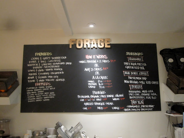 Forage is within sight of Tacos Delta and is a very interesting restaurant. It's a localvore establishment with come of the produce and food sourced from places within Los Angeles itself. A couple of people who grow fruits in their year (the streets here are full of lemon and orange trees with the best citrus out there) and they've gone through the certification process with the California Department of Health to sell to restaurants. The results? Local food grown sometimes down the street.